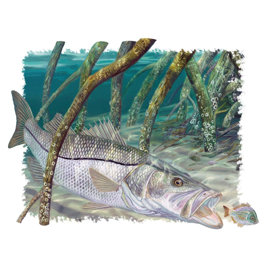 Camisas de pesca para hombres Snook Fish in Mangroves del galardonado artista Randy McGovern